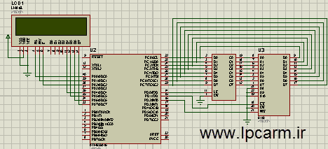 این مدار با نرم افزار پروتئوس به درستی کار نمی کند ولی به صورت عملی کاملا درست کار می کند. لازم به ذکر است که آدرس 0x40 در برنامه، همان آدرس شروع CGRAM(Character Generator RAM) می باشد. برای تولید کد های فارسی برای LCD از نرم افزار پیوست استفاده شده است.